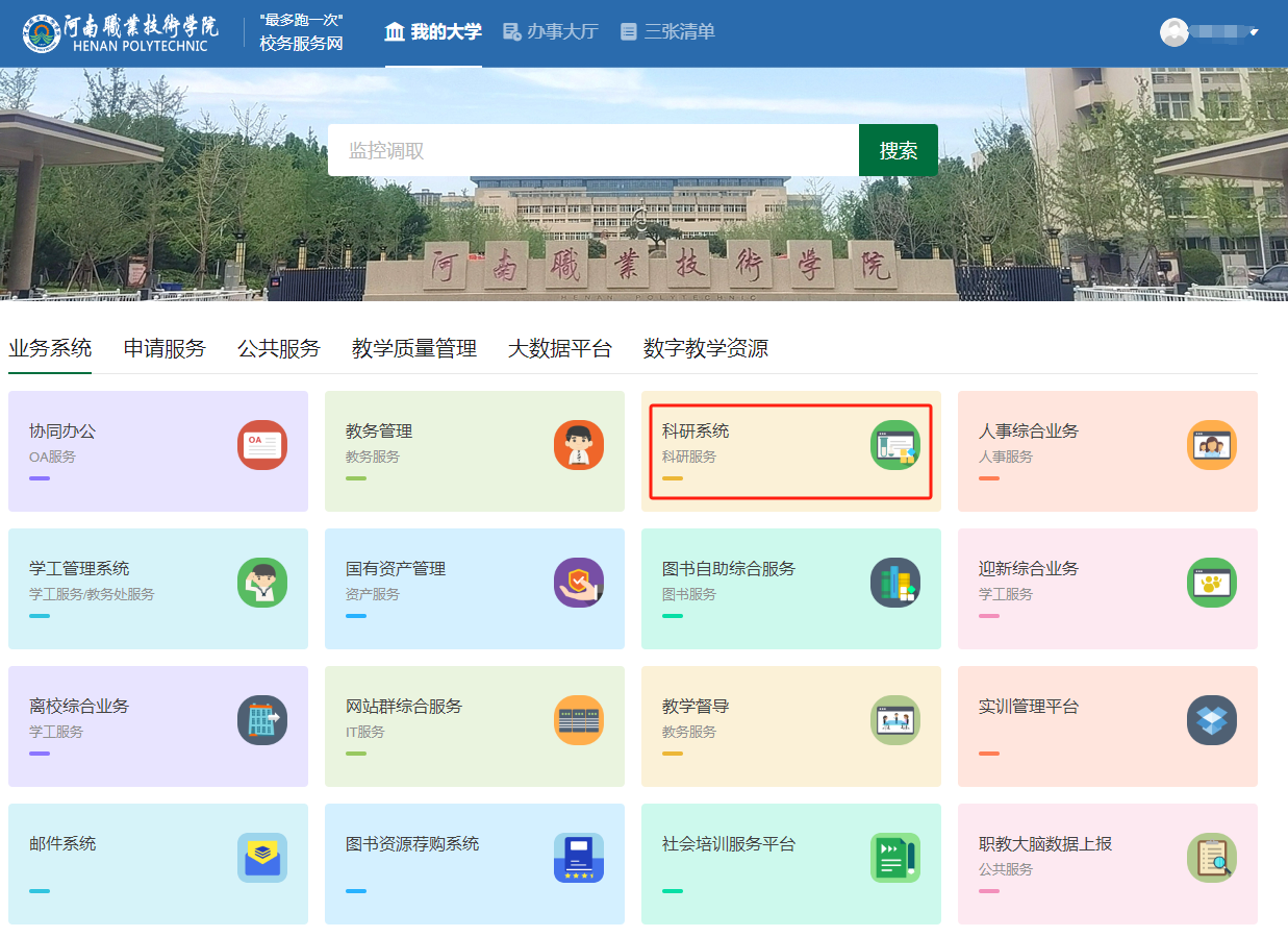 一、登录学校信息门户,进入科研系统。