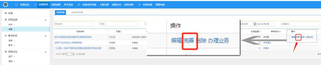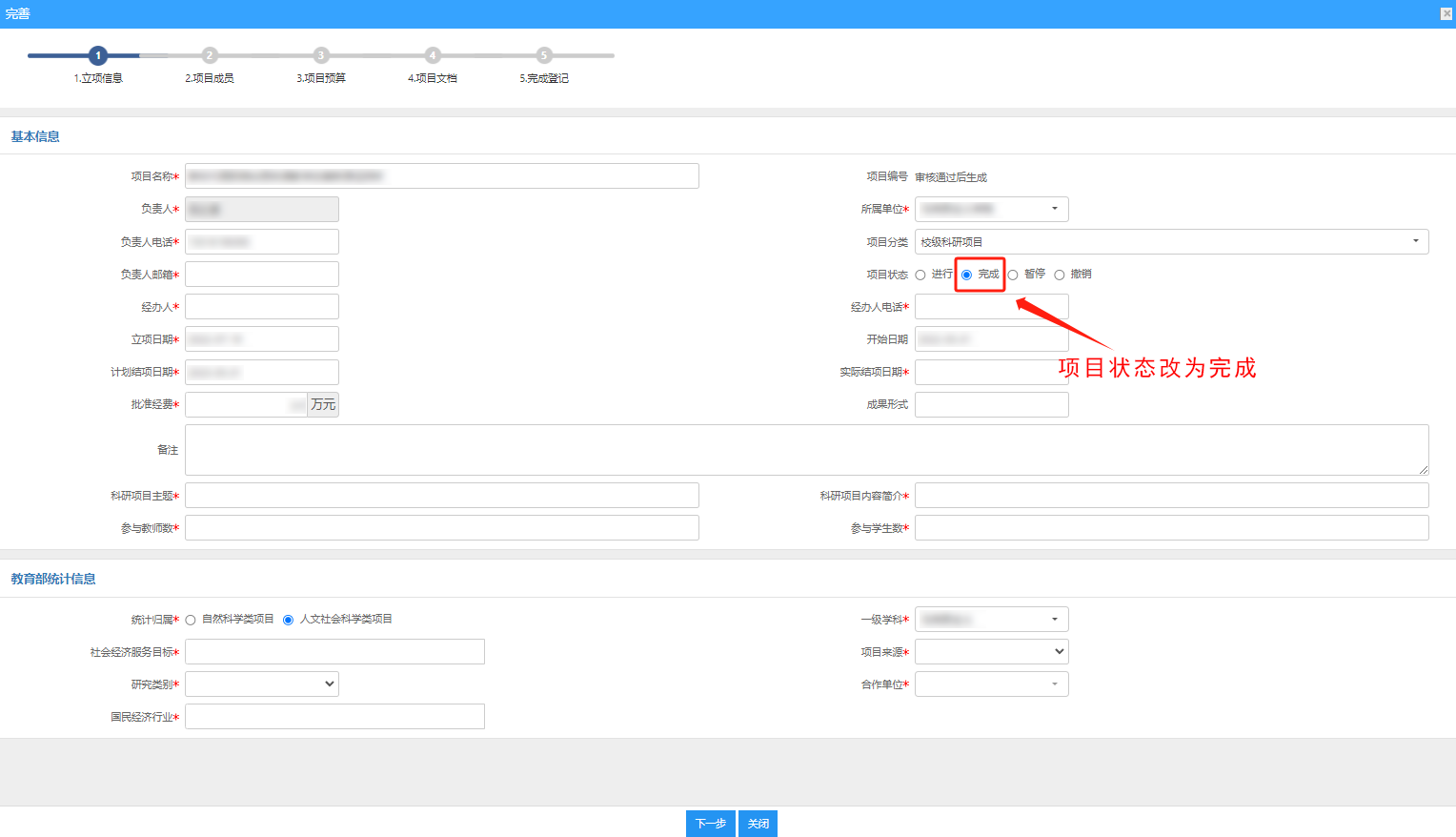 五、填写✶项目内容并将项目状态改为完成。