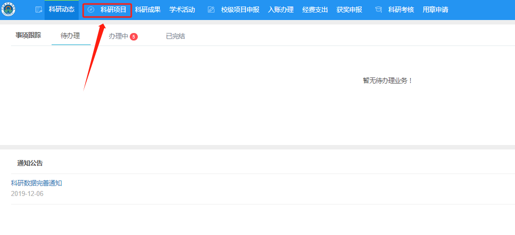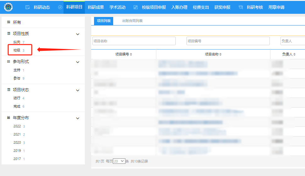 二、点击上方“科研项目”栏目。