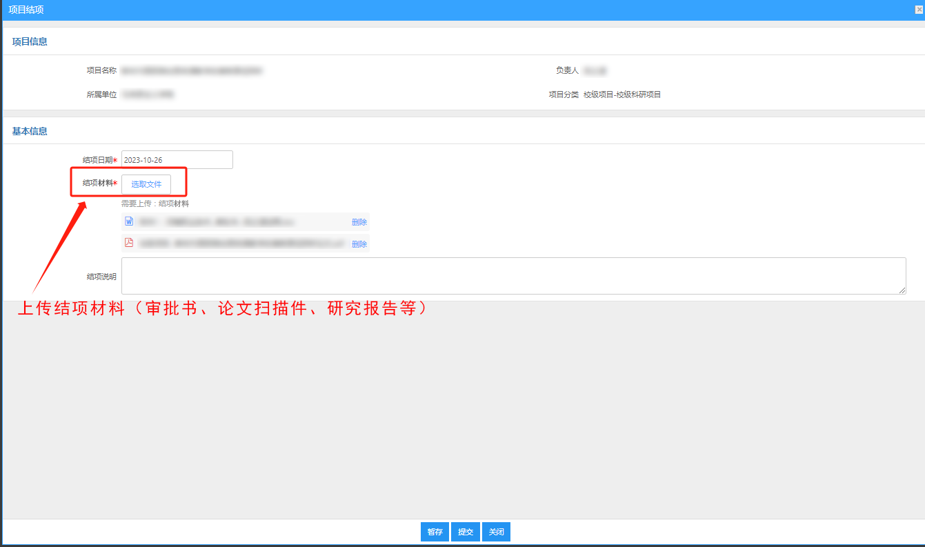 九、上传结项相关材料并提交。