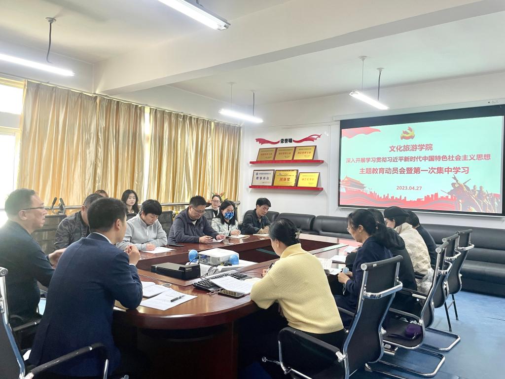 4月27日,文化旅游学院召开深入开展学习贯彻习近平新时代中国特色社会主义思想主题教育动员会暨第一次集中学习,全体教师党员和部分学生党员代表参加学习,会议由文化旅游学院党总支书记王伟主持。
