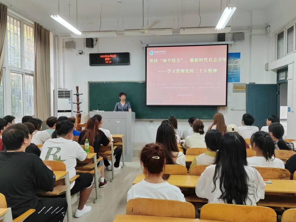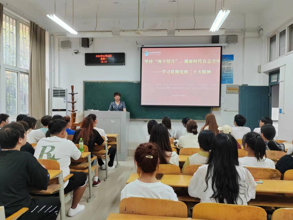6月26日下午18:00,马克思主义学院院长梁杰在明德楼2103教室给文化旅游学院35名学生党员开展了题目为《坚持“两个结合”,做新时代有志青年——学习贯彻党的二十大精神》的主题教育专题党课。