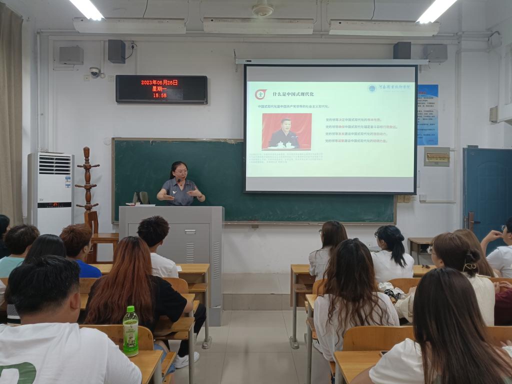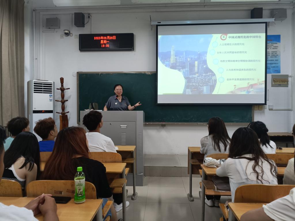 6月26日下午19:00,马克思主义学院吕洛乐老师在明德楼2103教室为文化旅游学院30多名学生党员开展了题目为《中国式现代化》的主题教育专题党课。