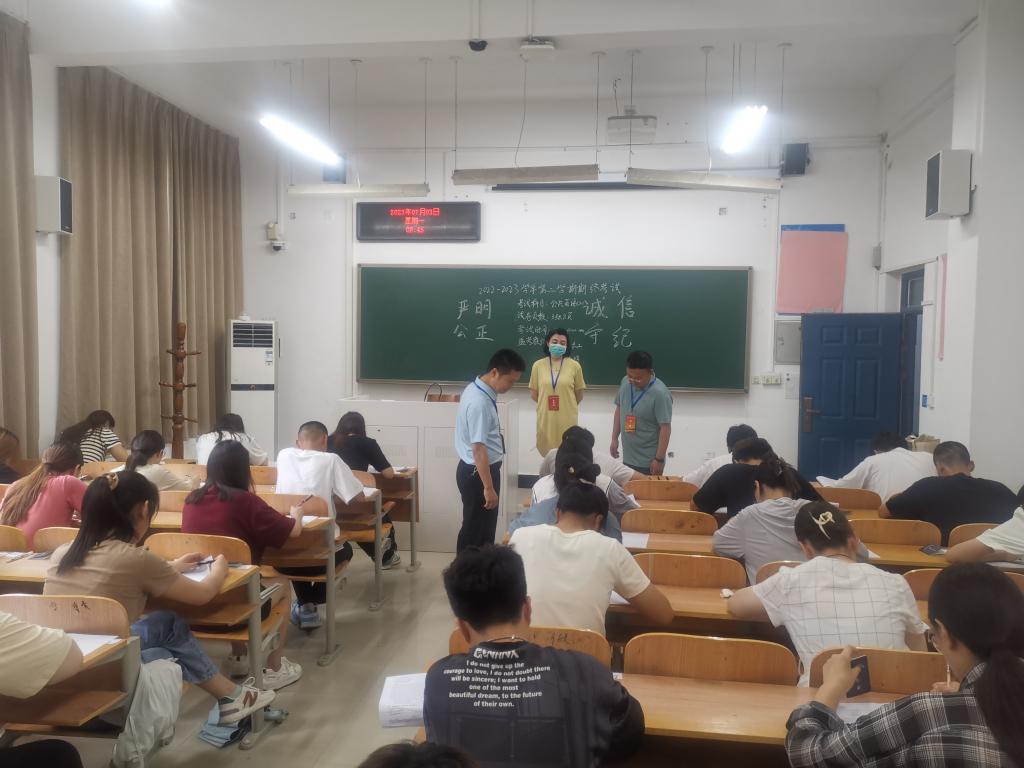 我院严格落实考风考纪宣传教育工作和巡考制度,切实为考生们营造一个公平公正、考风优良的考试环境。考前成立考试工作领导小组,对监考教师尤其是新进教师进行考前专题培训,并将考试要求、考试纪律等对学生做了考前动员。