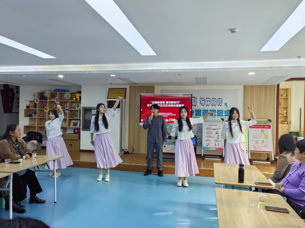 随后,志愿者表演了古风歌舞《青花瓷》和快板《颂党》,同学们优美的舞姿、悠扬的歌声、铿锵有力地快板,赢得了阵阵掌声和喝彩声。