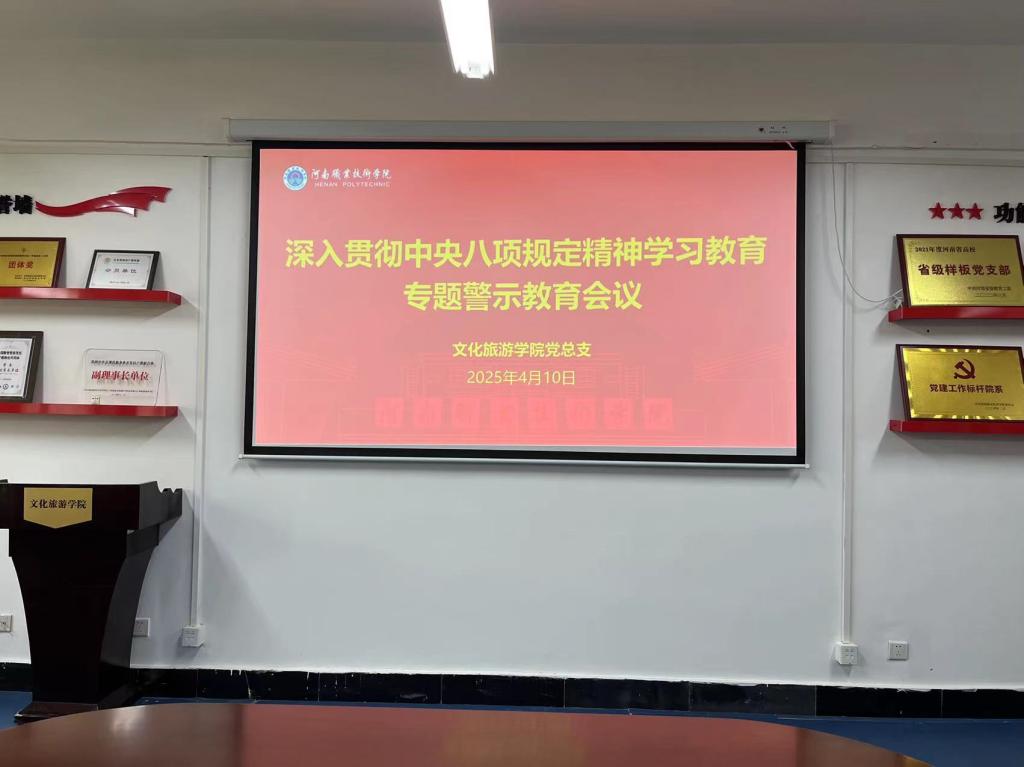 4月10日,文化旅游学院聚焦党风廉政建设,召开深入贯彻中央八项规定精神学习教育专题警示教育会议,旨在进一步强化全体教师党员的纪律意识和廉洁自律意识,营造风清气正的政治生态。学院党总支书记苏威、院长陈佳平、副书记田嘉及全体党员教师出席会议,会议由院长陈佳平主持。