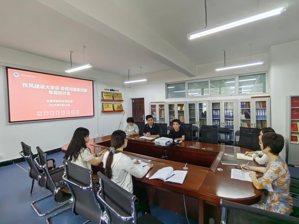 6月26日下午,文化旅游学院学生党支部在笃行楼630会议室开展 “作风建设大家谈 检视问题面对面”专题研讨活动。活动由学生党支部书记敬璐主持,支部全体党员参会。