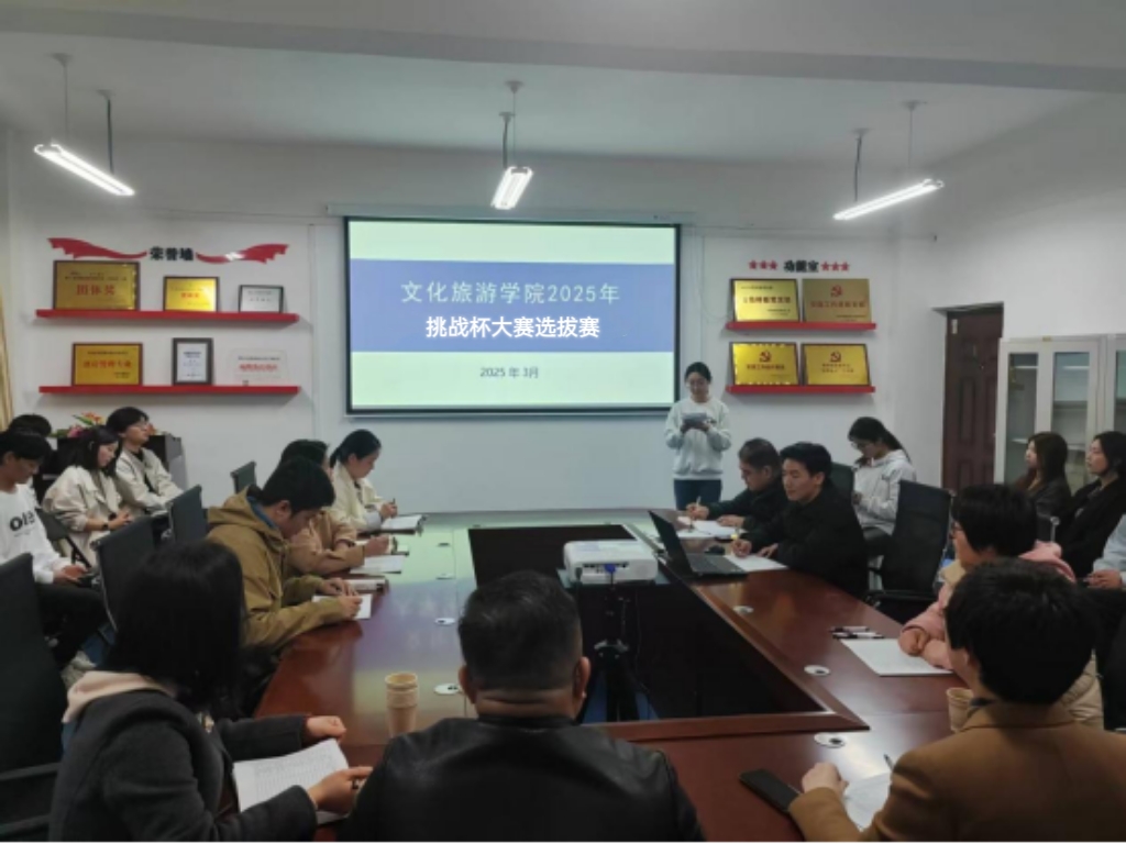 3月20日下午,文化旅游学院在笃行楼会议室成功举办2025年"挑战杯"河南省大学生课外学术科技作品竞赛院内选拔赛。本次选拔赛旨在挖掘优秀学生课外学术作品,培育创新人才,为校级和省级竞赛选拔优质作品。