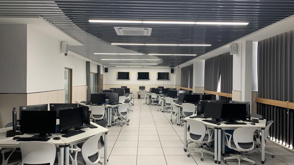 虚拟现实英语学习中心将虚拟动画与实景空间相结合,实现“虚实相融、相互补充、提升实效”以优质教学资源为核心,将抽象概念具象化,打造高度开放、可交互、沉浸式的三维学习环境。学生能够近距离体验行业真实场景设计,贴近实践,提高岗位工作所需的实操能力和动手能力,缩短学习和就业的距离。