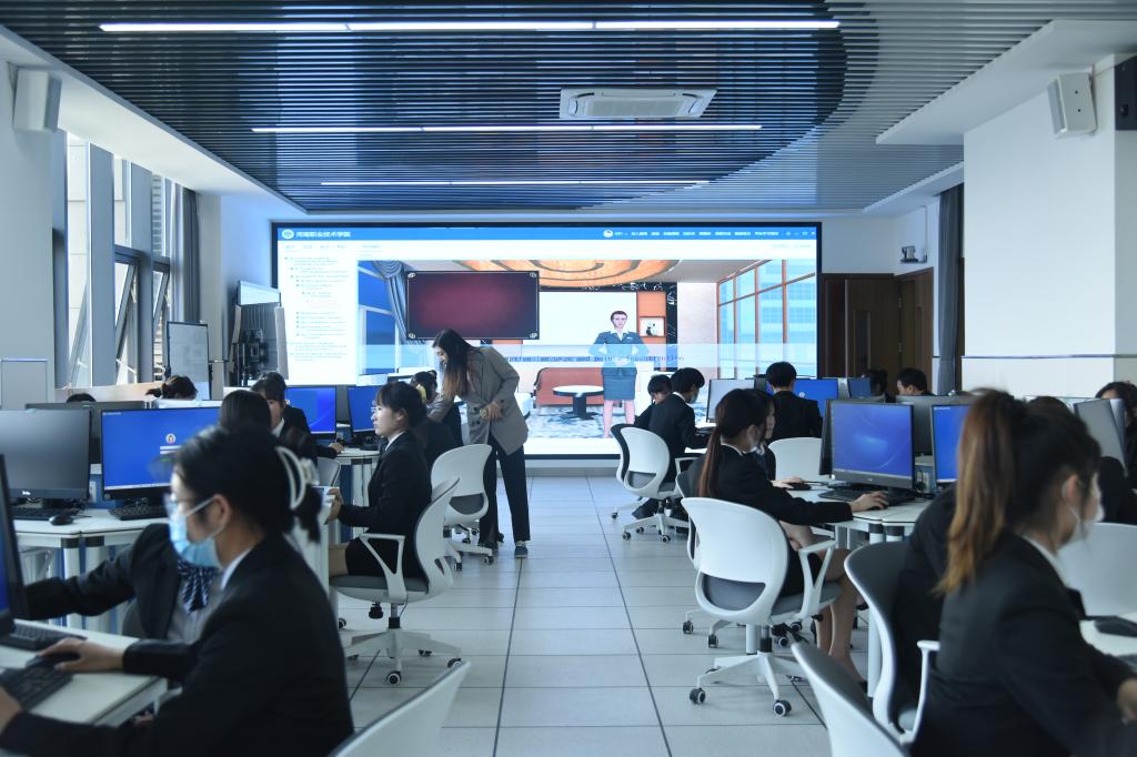 虚拟现实英语学习中心主要面向旅游管理、酒店管理与数字化运营、研学旅行管理与服务专业,完成英语口语、旅游英语、酒店英语、英语导游讲解的学习和实训
