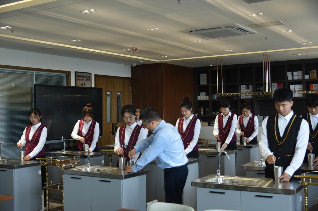 调酒实训室与现代酒吧、咖啡厅接轨,将产业前沿的先进技术元素、优秀文化融入到营造的旅游和酒店专业仿真教学环境中,有效服务于拓展学生专业技能,培养适应信息化时代一专多能的育人需求。便捷、高仿真的学习环境,对培养学生实践能力、创新能力从“有所知”走向“有所为提供环境支撑和技术支撑。