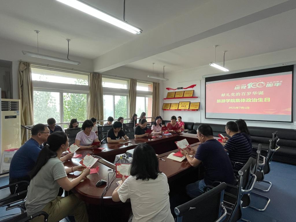 为深入开展党史学习教育活动,进一步强化党员身份意识和责任意识,2021年7月1日,旅游学院党总支开展“献礼党的百岁华诞,党员集体过政治生日”主题党日活动,旅游学院全体教师党员参加。