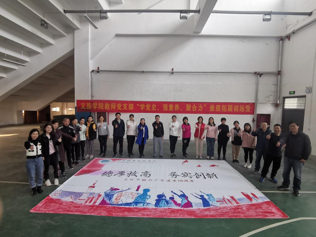 为深入学习党史,加强党性修养,提升教师党支部的战斗力、凝聚力和向心力,同时更进一步扩大党员在群众的影响力,10月21日,依托我院教师党支部,文化旅游学院全体教师举行了“学党史、强素质、聚合力”——以党建带群建素质拓展活动。