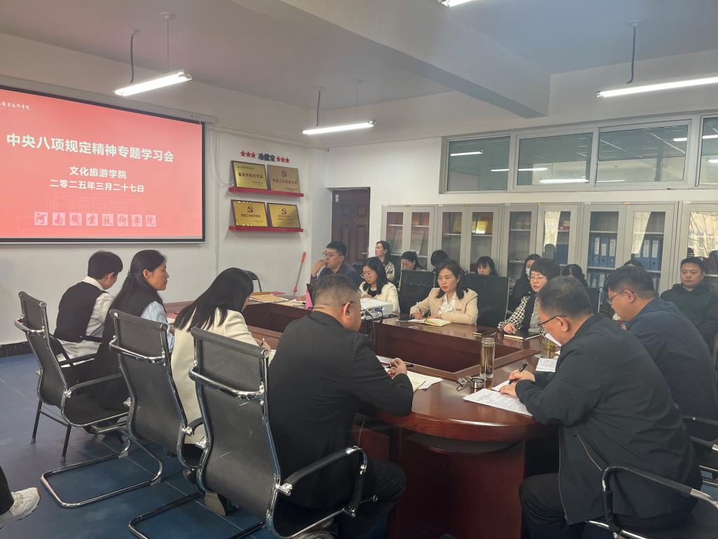 为贯彻落实《中共河南职业技术学院委员会关于在全校党员中深入贯彻中央八项规定精神学习教育的工作方案》文件精神,深入贯彻中央八项规定精神学习教育,3月27日下午,文化旅游学院召开中央八项规定精神专题学习会,全体党员教师参加会议。会议由党总支书记苏威主持。
