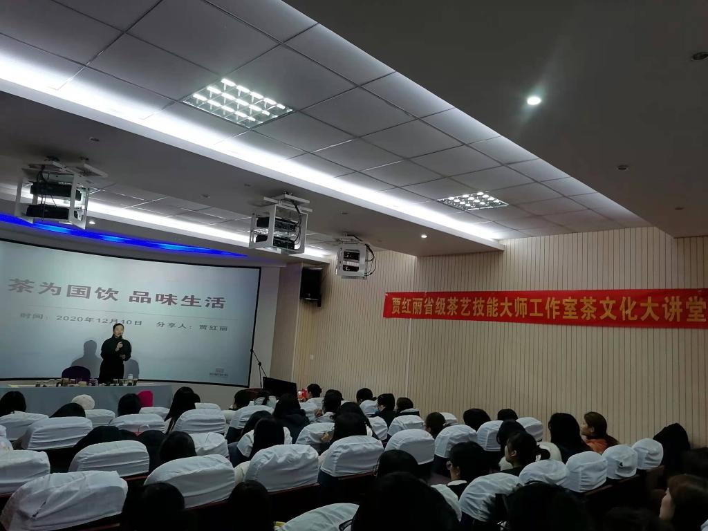12月10日下午,我院邀请河南省茶艺技能大师、国家茶艺大赛评委、河南省星评员、郑州市技术能手贾红丽为2019级旅行社经营管理、导游专业80余名学生作了题为《旅游从业者的人文素养》的讲座。