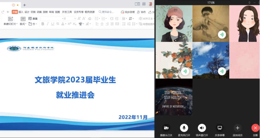 为进一步做好2023届毕业生就业指导与帮扶工作,帮助学生树立科学的就业观、择业观,促进毕业生更充分、更高质量的就业,文化旅游学院于2022年11月18日通过视频会议,召开2023届毕业生就业工作推进会,院党总支书记王伟、副书记郭丽、就业专干及全体毕业班辅导员老师参加了会议。