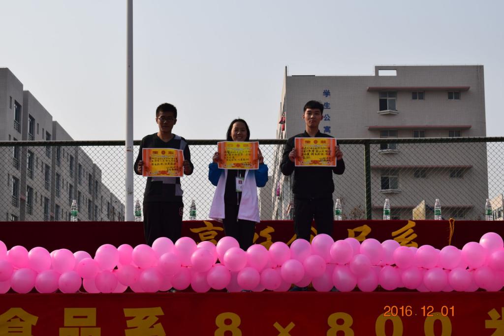 为提高同学们的身体素质,丰富大学生的课外生活,增强大一新生的班级凝聚力,2016年12月1日,烹饪食品系在学院体育场举办了2016级“8×800米接力”比赛。本次比赛由系学生会负责组织实施,得到了同学们的积极响应和热烈欢迎。