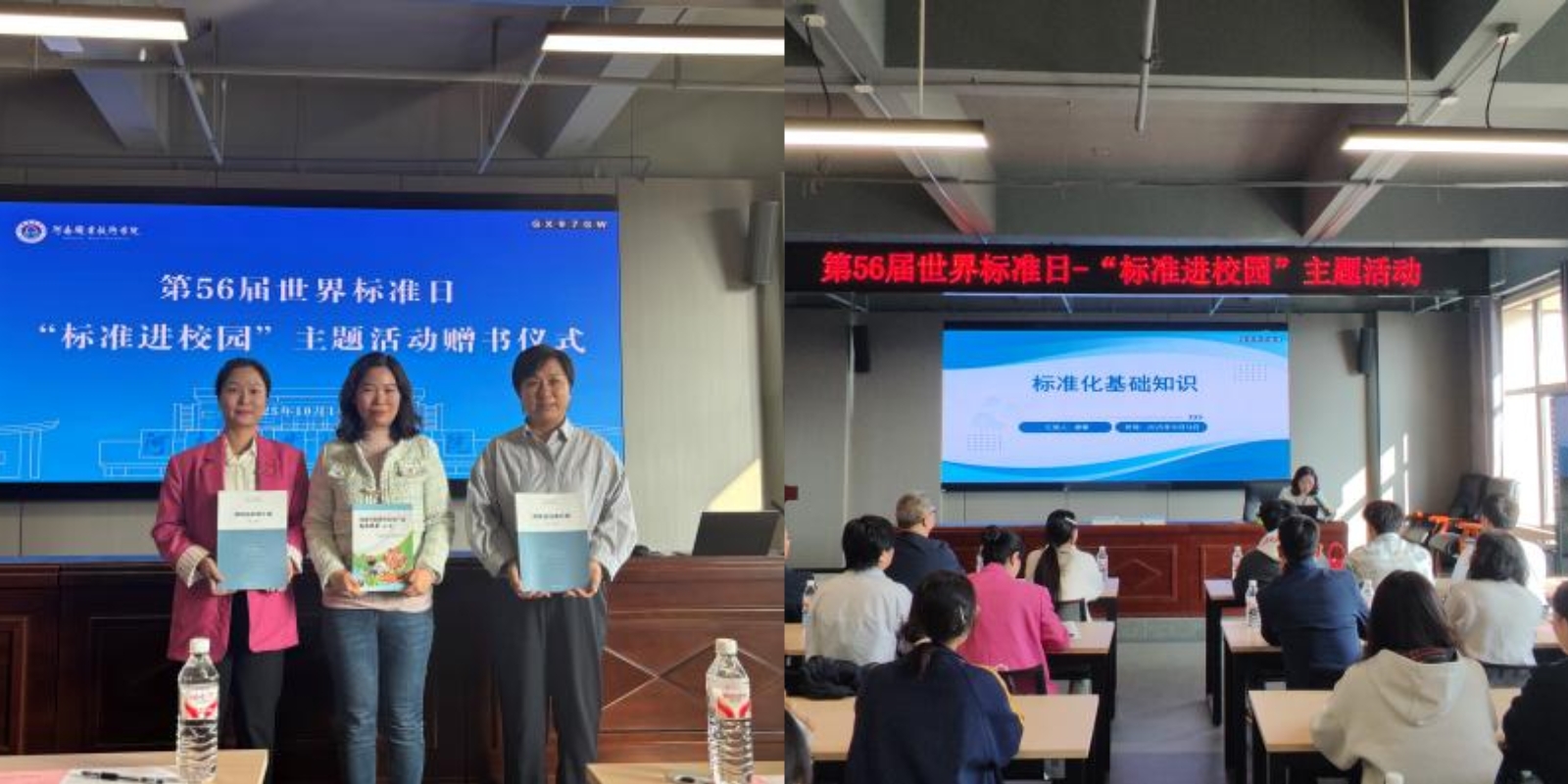 随后,郭敬东代表河南省标准化和质量研究院宣读第56届世界标准日祝词,深刻阐释“美好世界的共同愿景:增强伙伴关系,共促可持续发展”的主题内涵。他指出,标准化是跨越地域、连接产业的“通用语言”,而高校作为人才培养的“源头活水”,只有将标准理念融入教育全过程,才能为行业输送“懂标准、用标准、造标准”的后备力量,这正是此次校院合作的核心价值所在,进一步深化了在场师生对标准化战略意义的认知。