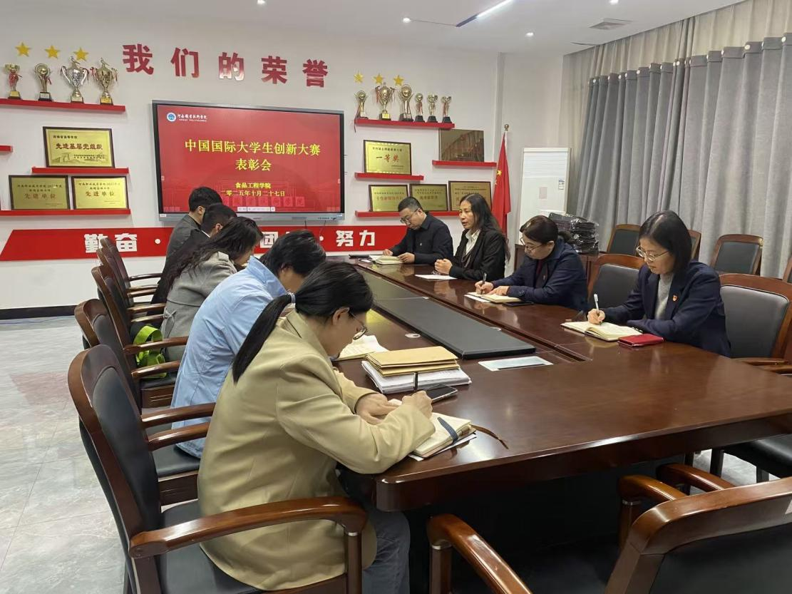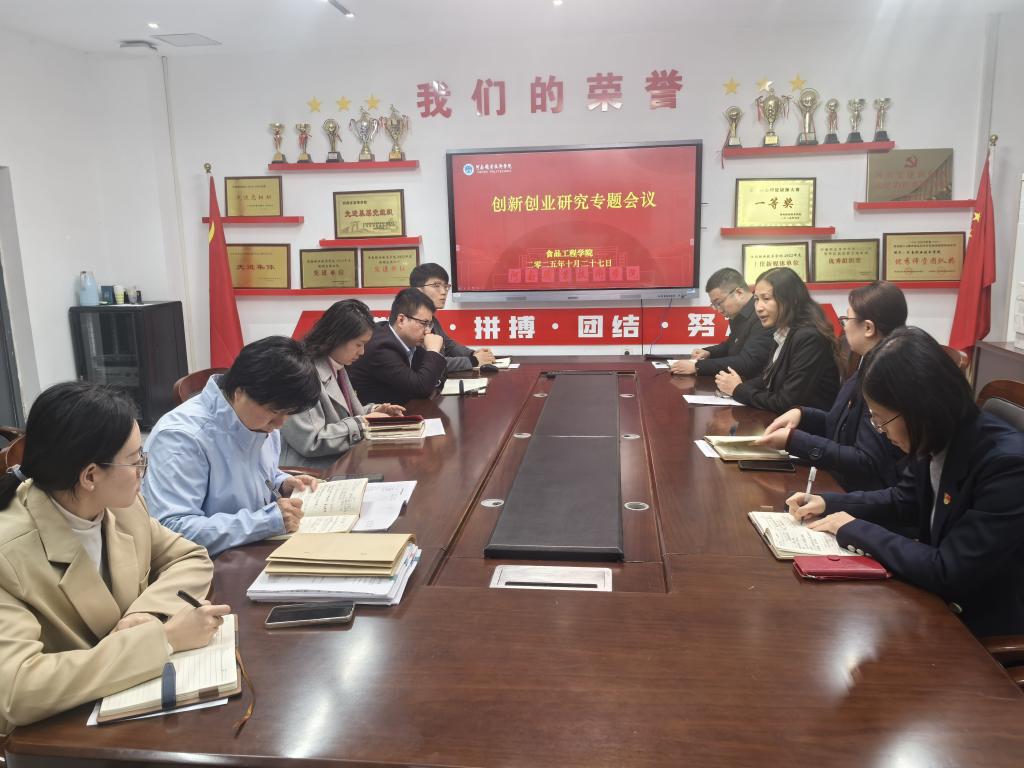 为总结创新创业教育成果,激励全院师生积极投身创新创业实践,2025年10月27日下午,食品工程学院在健行楼109会议室隆重召开了2025年中国国际大学生创新大赛表彰会暨创新创业专题动员会。学院全体教师参会,会议由党总支书记王延东主持。