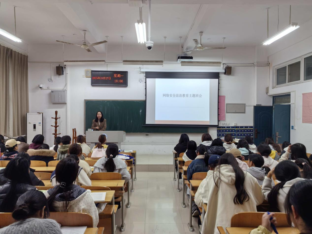 针对在校学生,辅导员老师召开了形式多样、内容丰富的网络安全法治教育主题班会。在班会上,他们通过分析“AI换脸诈骗”、“刷单返利”、“冒充客服”等网络作案手段,揭示了网络犯罪的常见手法与严重危害,教育引导学生们自觉抵制不良信息,不轻信、不透露、不转账,提升辨别能力和防护技能。此外,结合当前高发的网络诈骗、个人信息泄露、网络借贷陷阱、网络谣言传播等典型案例,老师们向大家普及了《网络安全法》、《个人信息保护法》等相关法律法规。