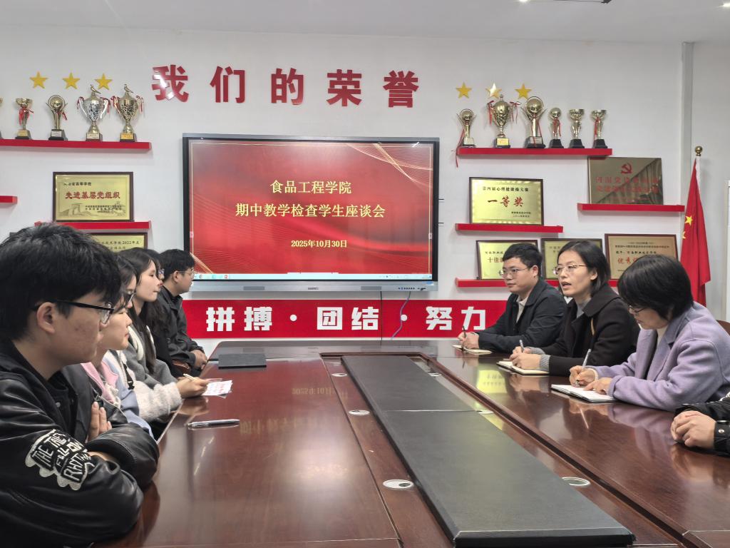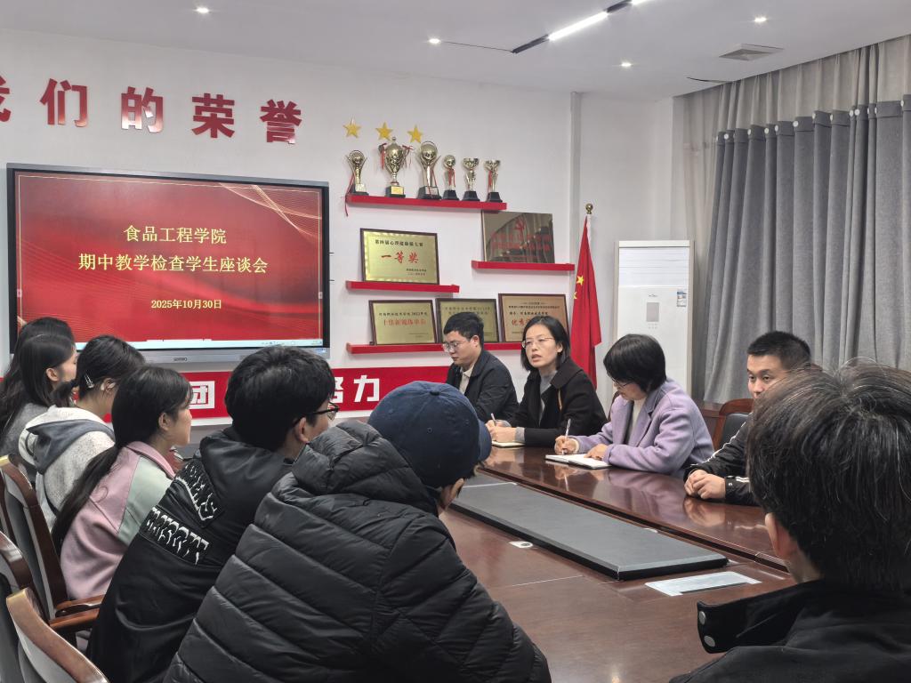 为深入贯彻落实学校学风建设要求,全面把脉本学期教学运行实况,及时发现并解决教学过程中的实际问题,食品工程学院于10月30日在健行楼109教室组织召开了2025-2026学年第一学期期中教学信息员座谈会。会议由学院副院长李亚欣主持,学院教学督导组成员、2024级和2025级全体教学信息员共同参会。
