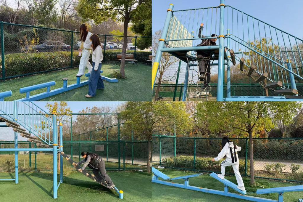 活动聚焦“心理赋能、团队凝聚”目标,依托平衡训练、绳网协作等项目,引导学生在实践中锻炼情绪调节与人际互动能力,参与在平衡类设施中稳定身心状态,在协作项目里强化沟通配合,穿梭于绳网间相互鼓劲,在协作中拉近距离。从单人体验到组队互动,大家在户外暖阳里卸下疲惫,以舒展的状态投入每一个环节,欢笑声回荡在场地间,过程中既展现了积极参与的态度,也实现了压力的有效疏解。
