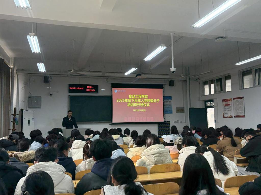 为进一步做好党员发展工作,加强对入党积极分子的培养教育,严把党员发展“入口关”,12月8日,食品工程学院 2025 年度下半年入党积极分子培训班开班仪式在2108教室举行。学院党总支书记王延东出席,全体辅导员及本期入党积极分子参加,活动由学生党支部组织委员常宁博主持。