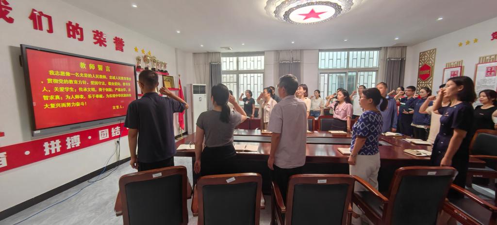最后,全体教师举起右拳,以洪亮的声音,重温教师誓词:“忠诚人民教育事业,履行教师神圣职责;传承华夏文明之脉,奠定中原崛起之基......。”教师誓词字字扣心,句句千钧,在铿锵的誓言中,全体教师铭记教育初心,信念更加坚定。(撰稿:张一宁 审稿:付红丹)