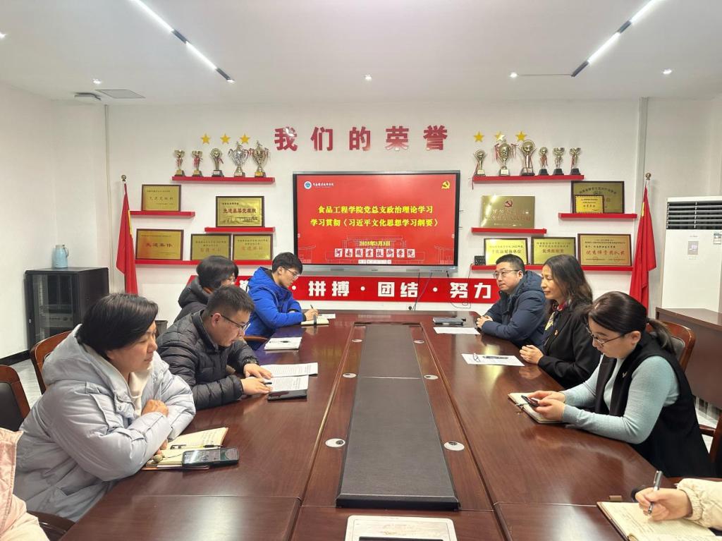 学院党总支将持续组织多样化的学习活动,引导教师党员持续深化对习近平文化思想的理解,将其更深入地贯彻到教育教学实践中,不断提升教育教学质量,培养更多具有文化底蕴、文化自信和创新精神的食品专业人才。(撰稿:胡雅琪;审核:张宇)