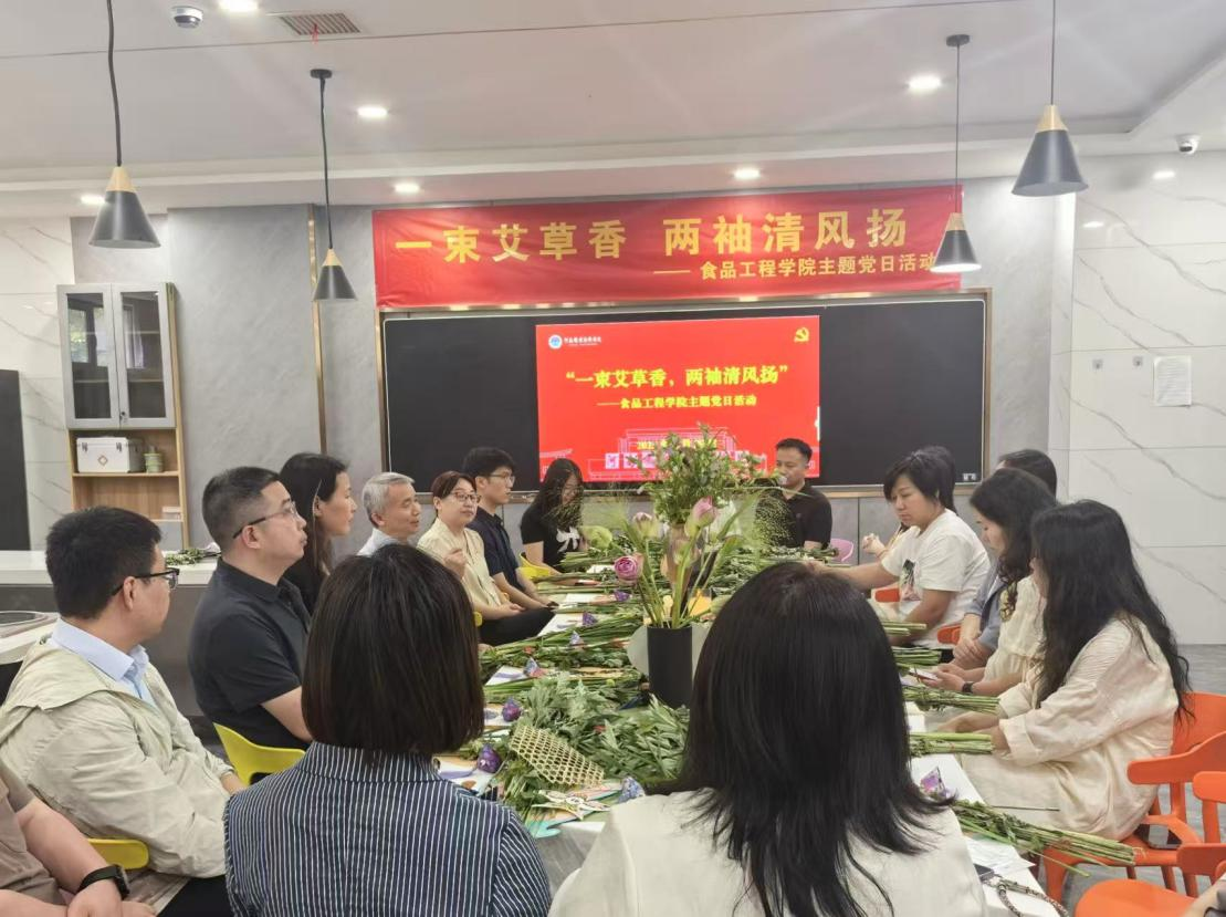 为深入贯彻落实中央八项规定精神,弘扬传统节日文化,增强党员干部的党性修养和廉洁自律意识,5月29日,食品工程学院党总支组织开展了“一束艾草香,两袖清风扬”主题党日活动,校纪委书记盛兴文参加活动并讲话。活动由党总支书记王延东主持,学院全体党员教师参加。