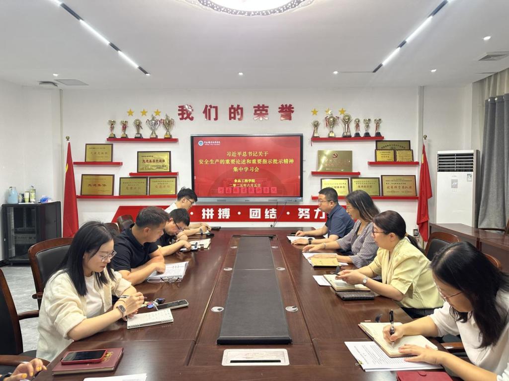 在集中学习环节,学院党总支副书记张宇领学了“习近平总书记关于安全生产的重要论述和重要指示批示精神”,他详细梳理了总书记关于安全生产的系列重要讲话内容,结合食品工程学院的实际工作,特别指出在食品实验教学、实训基地操作以及生产实习等环节,务必树牢安全发展理念,严格遵守安全规范,坚决遏制安全事故发生,要在日常工作中进一步强化安全意识,落实安全责任。