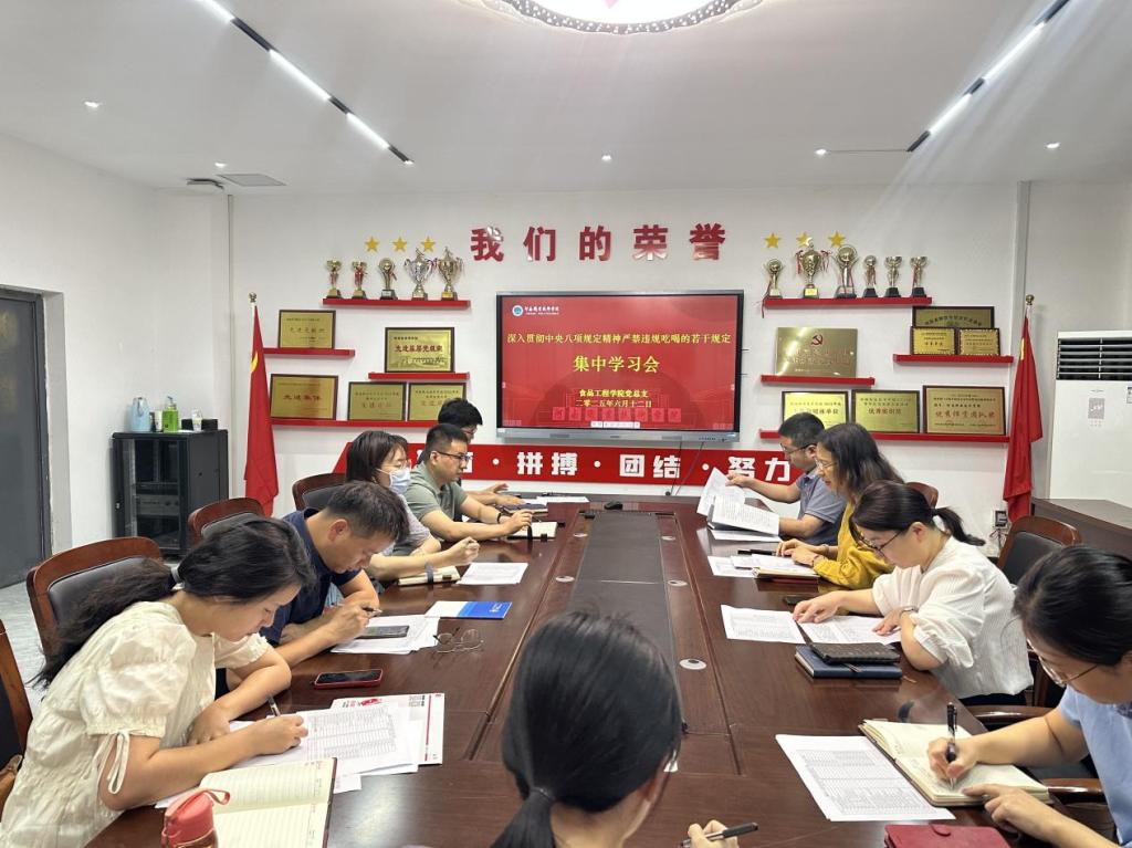 6月12日下午,食品工程学院党总支于学院会议室开展了深入贯彻中央八项规定精神严禁违规吃喝的若干规定集中学习会。此次会议由党总支书记王延东主持,学院全体党员教师参与。