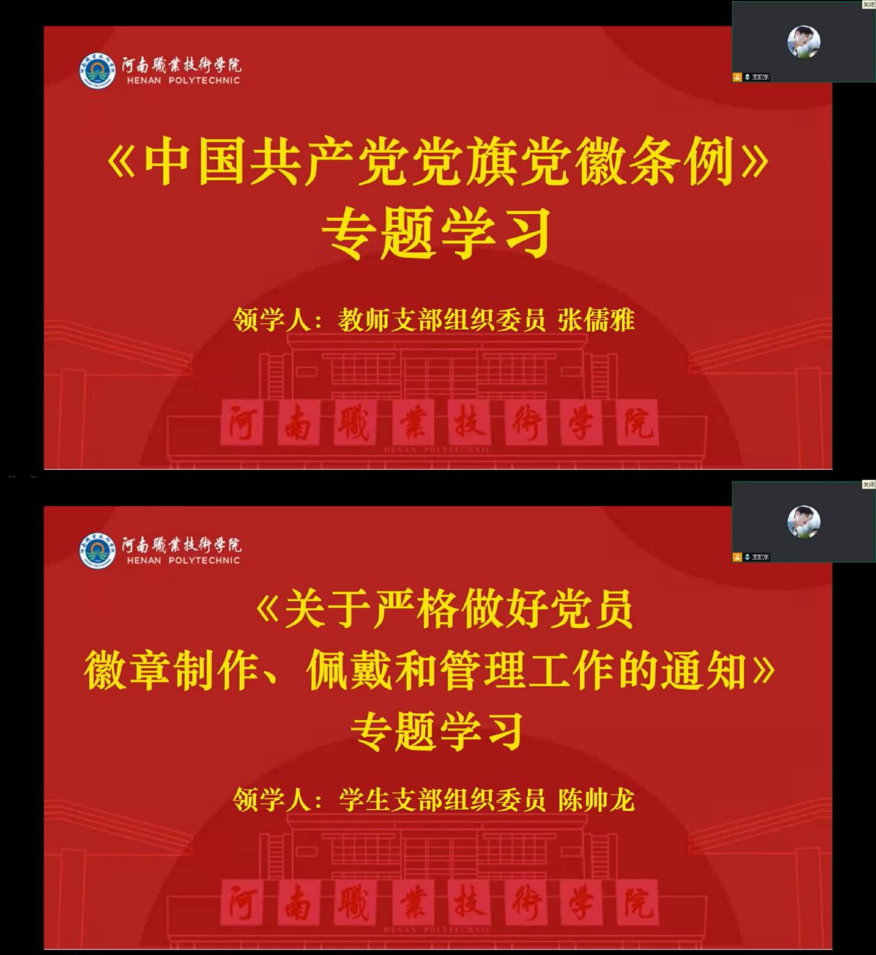 2025年7月21日下午,食品工程学院党总支开展了《中国共产党党旗党徽条例》及《关于严格做好党员徽章制作、佩戴和管理工作的通知》线上专题学习会。此次会议由党总支书记王延东主持,全体党员教师参与学习。