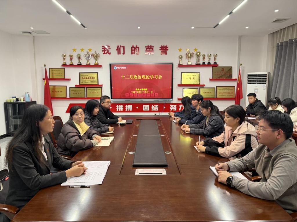 12月11日下午,食品工程学院党总支在109会议室召开十二月政治理论学习会,集中学习近期重要政治理论内容。学院党总支书记王延东主持会议,全体党员教师参加学习。