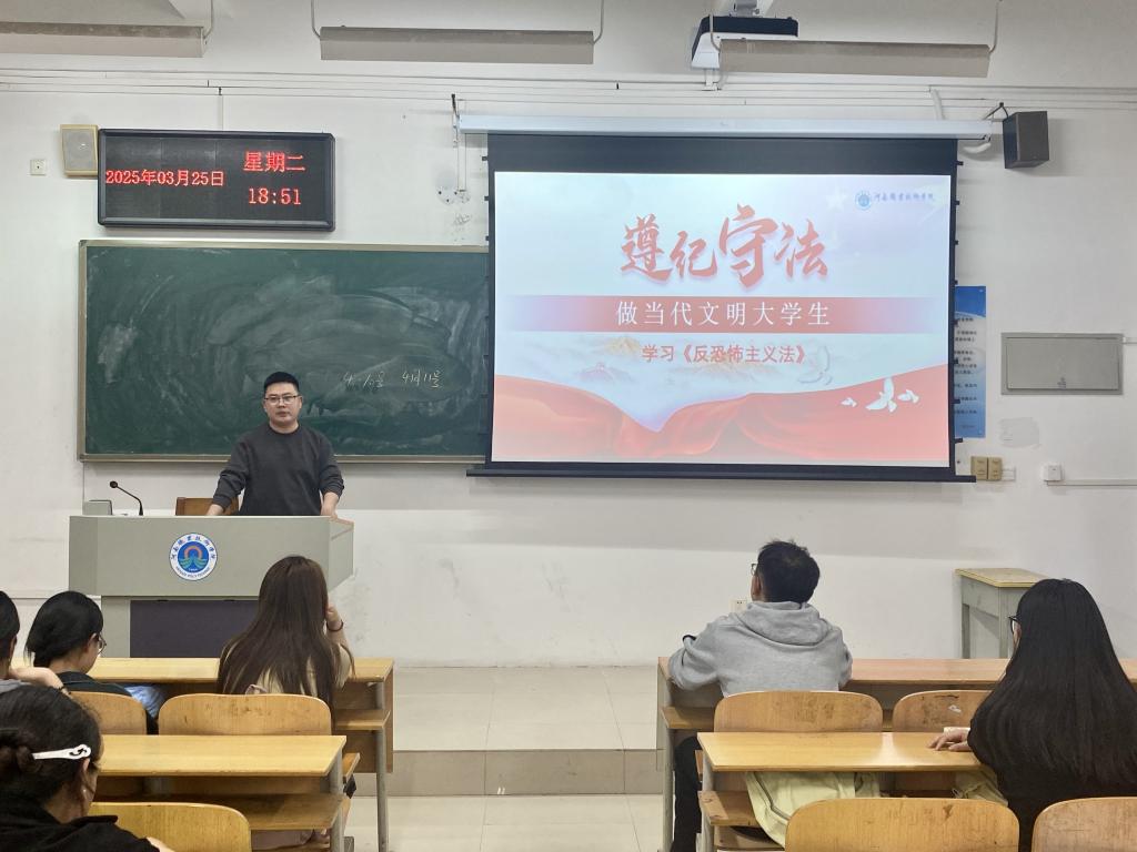 班会上,各辅导员老师们带领学生系统学习了《中华人民共和国反恐怖主义法》的核心内容,重点解读了法律中关于公民反恐责任、恐怖活动预防与应对、法律责任等条款。通过播放反恐教育宣传片、剖析典型案例,生动展现了恐怖主义的危害及防范措施。