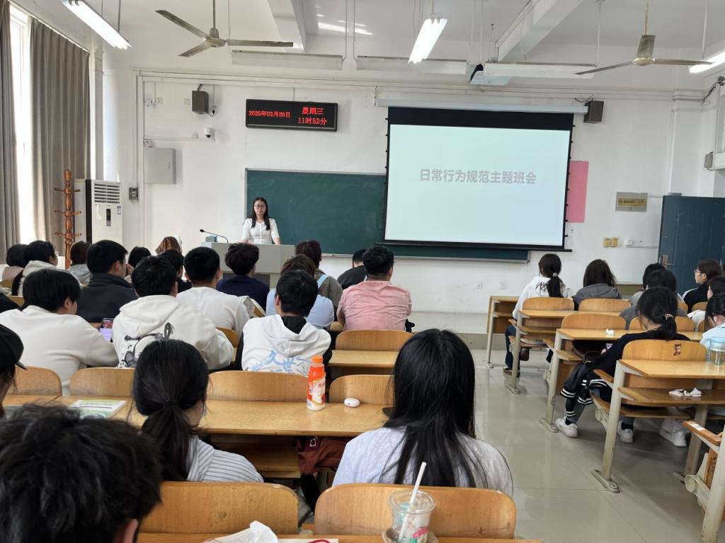 为进一步加强大学生思想政治教育,规范学生日常行为习惯,营造文明和谐的校园氛围,食品工程学院于2025年3月19日-3月26日组织全院开展“强化行为规范 涵养文明风尚”主题班会活动,引导学生树牢规则意识、涵养文明品行,助力学生全面发展。
