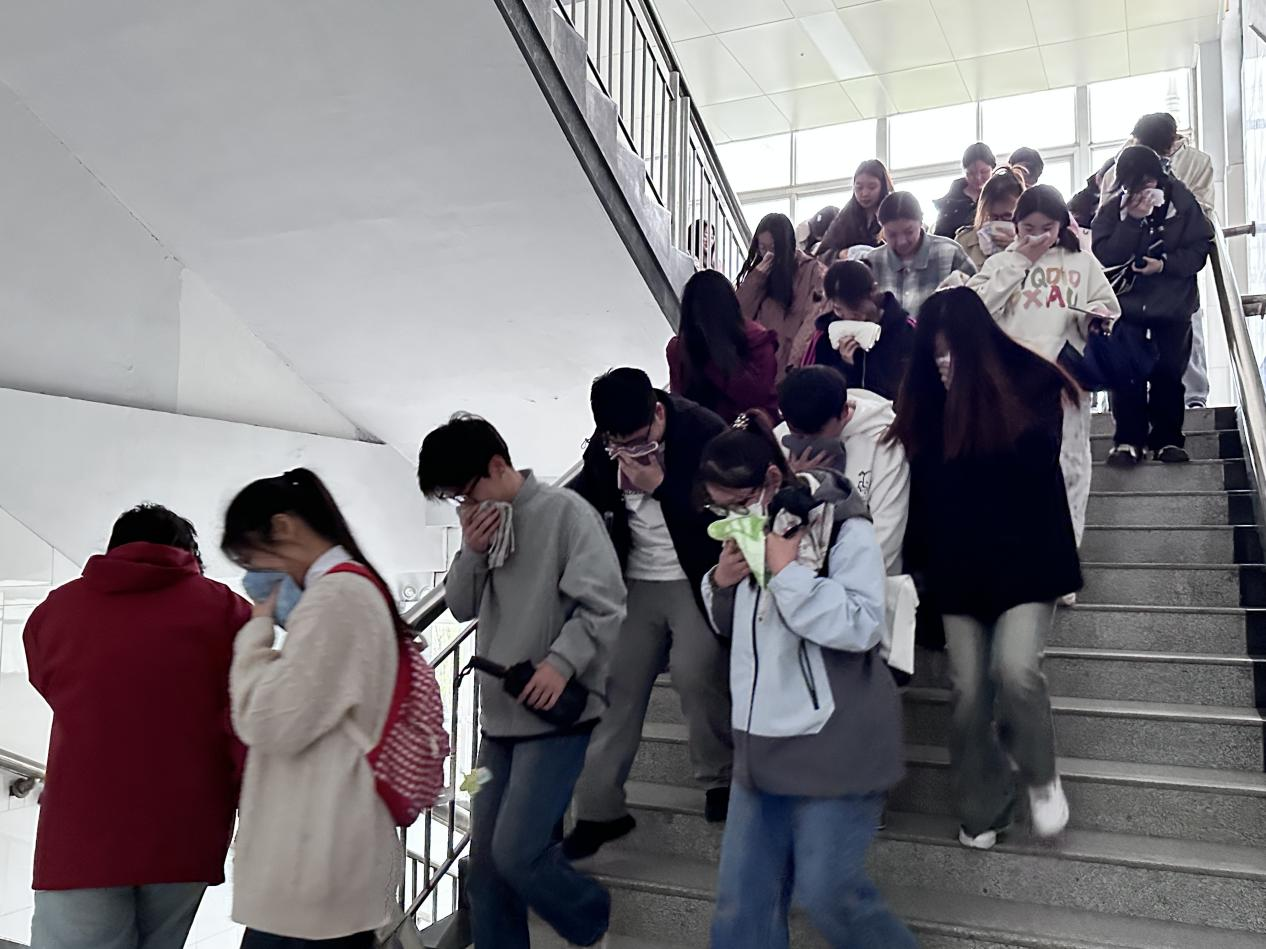 会议伊始,辅导员白晓琳老师对3月26日宿舍安全排查情况进行了通报,要求所有五级网格长切实肩负起宿舍安全责任,以“零容忍”态度筑牢安全防线。随后,陈帅龙老师以某高校因插线板过载引发火灾的惨痛教训为例,剖析宿舍违规电器使用、消防通道堵塞等隐患风险,警示学生“隐患即事故”,必须时刻绷紧安全之弦。同时,系统讲解火场逃生技巧、灭火器分类及操作规范,并现场演示“提、拔、握、压”四步灭火技巧。在理论讲解与案例剖析的基础上,全体参训人员集中观看了《高校火灾警示录》与《火场逃生十大法则》教育视频。影片通过还原因宿舍违规用电造成消防事故等真实火灾场景,直观展现火势蔓延的迅猛性与自救逃生的紧迫性。视频中,浓烟封锁逃生通道、学生因慌乱跳楼受伤等画面令在场学生深受震撼。最后,为检验培训成效,学院在教学楼组织学生开展模拟逃生演练。参训学生在老师们的指导下,用湿毛巾掩住口鼻,沿安全指示灯匍匐通过充满无害模拟烟雾的障碍区域,95%的学生掌握了“低姿快行、扶墙撤离”的逃生要领。