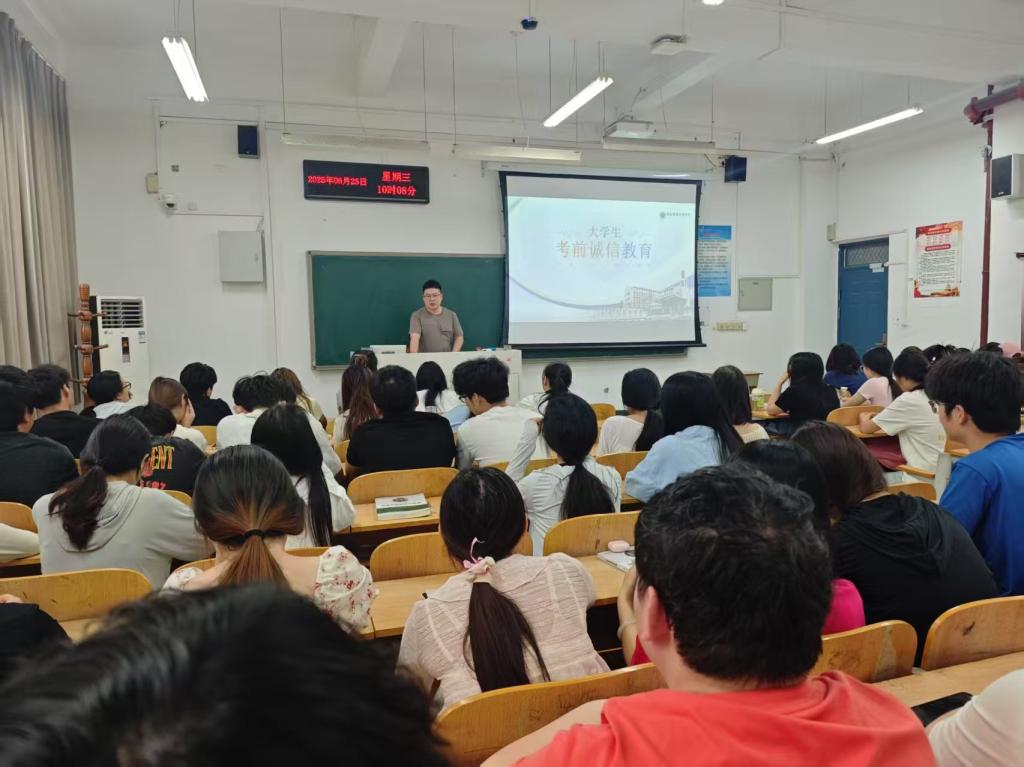 临近期末考试,为严肃考风考纪,营造公平公正、诚实守信的考试环境。6月23日到27日,食品工程学院统一部署组织全体在校生辅导员深入各学生班级,开展了以“诚信应考,端正学风”为主题的期末诚信考试班会活动。