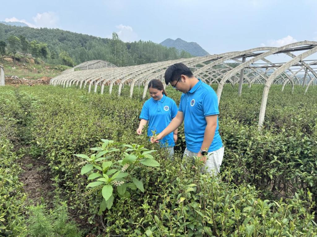 7月11日下午,实践团到了卢仝茶园开展茶文化体验与产业调研活动。卢仝茶园坐落在思礼镇卢仝文化核心区,相传是“茶仙”卢仝当年采茶、制茶的地方。走进茶园,层层叠叠的茶树梯田映入眼帘,空气中弥漫着淡淡的茶香。带队老师向同学们介绍:"这里的茶树品种特殊,采用传统方式种植,保留了最纯正的茶文化基因。在这片承载着千年茶韵的土地上,同学们亲身感受传统茶文化的魅力,探索茶产业助力乡村振兴的新路径。