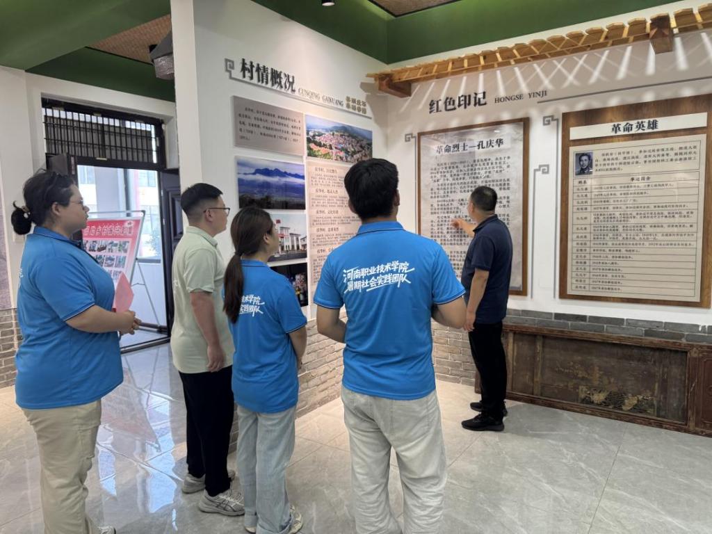 7月11日上午,实践团来到了济源市思礼镇。思礼镇因纪念革命英雄而得名,历史悠久,文化积淀深厚。在思礼镇,同学们非常有幸到庆华村村史馆进行了参观,在那里了解到先辈们的奋斗历程和革命精神。感受到了乡村发展的活力与潜力,在工作人员的讲解下,了解了思礼镇的历史沿革和文化特色。