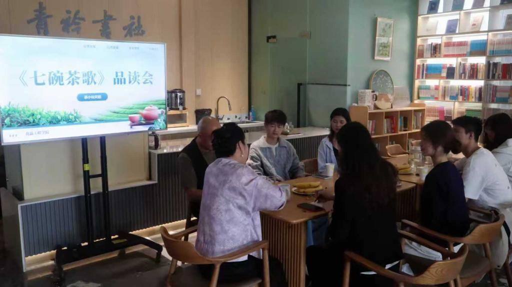 为深入落实学校“大思政铸魂工程”,推进“三全育人”综合改革,打造食品工程学院特色育人工作品牌。近日,食品工程学院青年学子走进青衿书社,与作家颜华围绕卢仝的《七碗茶歌》进行研讨,学院党总支书记王延东参加本次活动。