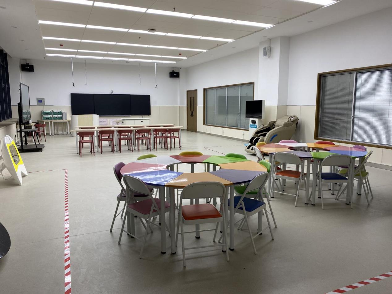 老年综合评估实训室是集认知老化测量、心理评估、老年心理健康辅导等活动于一体的实训中心。主要用于智慧健康养老服务与管理专业老年人认知能力评估、心理评估、压力调节、日常身心放松、心理辅导、应激训练、催眠放松、团体活动、心理剧活动等方面的教学演示,可以承担《老年心理护理实训》、《职业素养训练实训》、《老年活动策划实训》、《老年服务伦理》等多门课程的教学,服务于智慧健康养老服务与管理专业。实训室能容纳60名学生,可提供演示教学之用,同时具有开展专业讲座、社会培训和职业技能考评的功能。