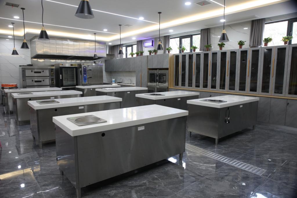 面点综合实训室兼具中式面点和西式面点实训的功能,主要承担《地方面点制作技术》、《中西面点制作基础》等多门课程的教学和训练,服务于食品智能加工技术、烹饪工艺与营养、中西面点工艺等专业,可容纳30-50名学生开展实训,学生在教师的指导下进行面点品种的练习,不但可以提高手工操作技能,并且学会运用先进设备制作中西式面点。同时,该实训室具有中式面点师、西式面点师、公共营养师、营养配餐员等社会培训和职业技能考评的功能。