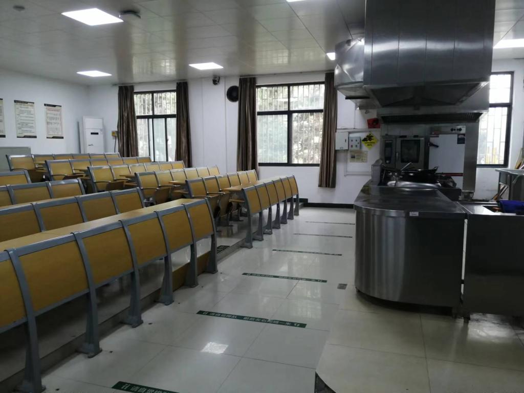 烹饪实训演示室主要用于烹调工艺与营养专业热菜、冷菜和面点的制作教学演示,可以承担《烹调工艺》、《冷菜工艺》和《面点工艺》等多门课程的教学,服务于烹调工艺与营养、中西面点工艺、食品加工技术、老年服务与管理等专业。实训室能容纳60名学生,可提供演示教学之用,同时具有开展专业讲座、烹调师社会培训和职业技能考评的功能。