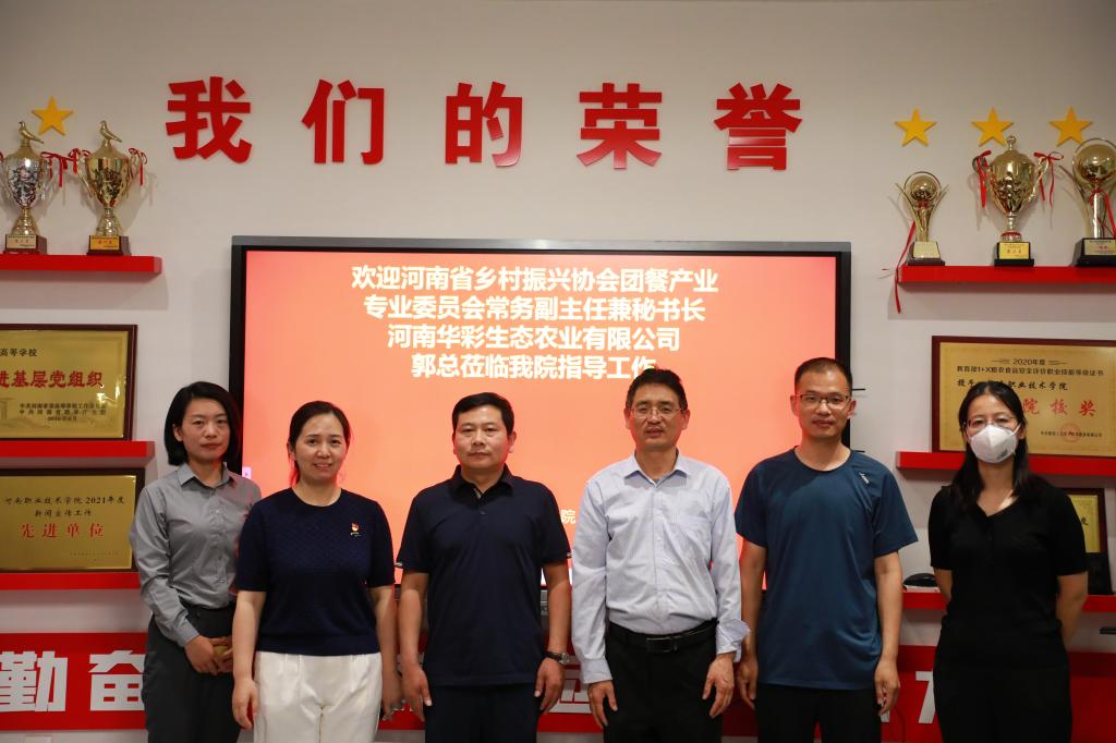 为准确把握就业市场形势,努力开拓就业岗位,帮助毕业生高质量就业,6月8日下午,河南省乡村振兴协会团餐产业专业委员会常务副主任兼秘书长、郑州团餐行业协会常务副会长、河南华彩生态农业有限公司董事长郭健伟一行受邀来学院就“访企拓岗”专项行动进行交流,学院王冠、李亚欣、付红丹、张琦等负责同志参加本次活动。