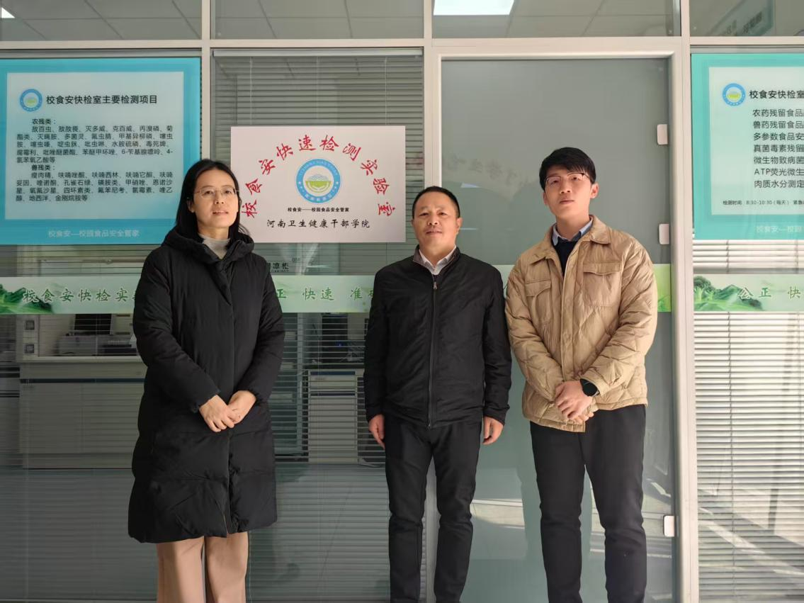 在符春彦的带领下,调研组实地考察了企业在河南省卫生健康干部学院设立的食品安全快速检测实验室,深入了解企业在快检技术研发、检测服务标准化建设等方面的创新成果。双方就深化产学研合作及共建实习实训基地等议题展开深入交流。