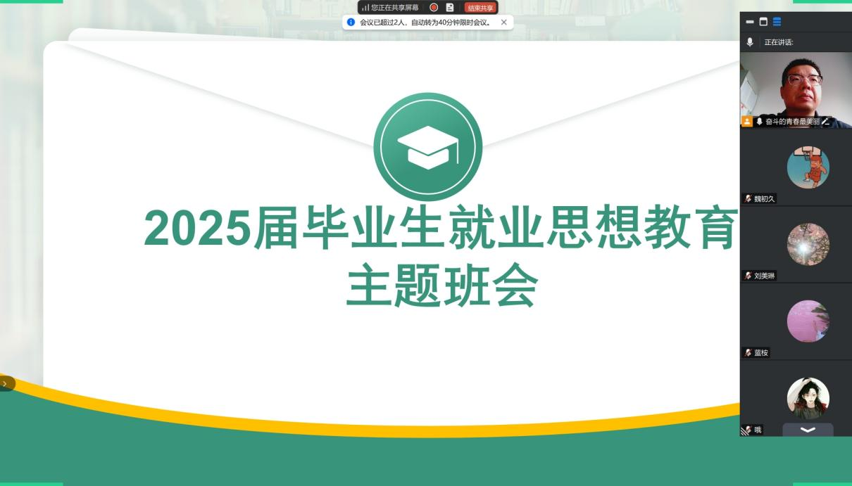 此次线上就业思想教育工作的开展,及时为毕业生们答疑解惑,帮助他们更好地了解就业形势与政策,明确了努力方向。学院将持续关注毕业生的就业动态,不断优化就业服务,助力2025届毕业生实现高质量就业。(撰稿:张一宁;审稿:张宇)