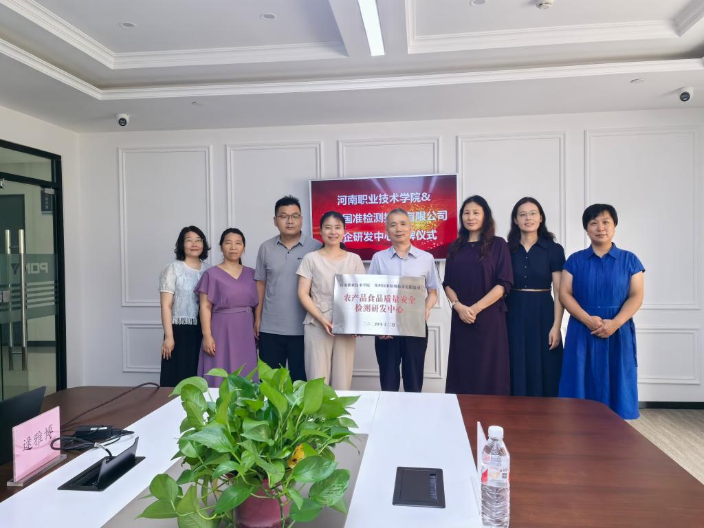 座谈会后,校企双方共同为“河南职业技术学院——郑州国准检测技术有限公司农产品食品质量安全检测研发中心”揭牌,标志着资源共享、优势互补的产学研融合平台正式落地。