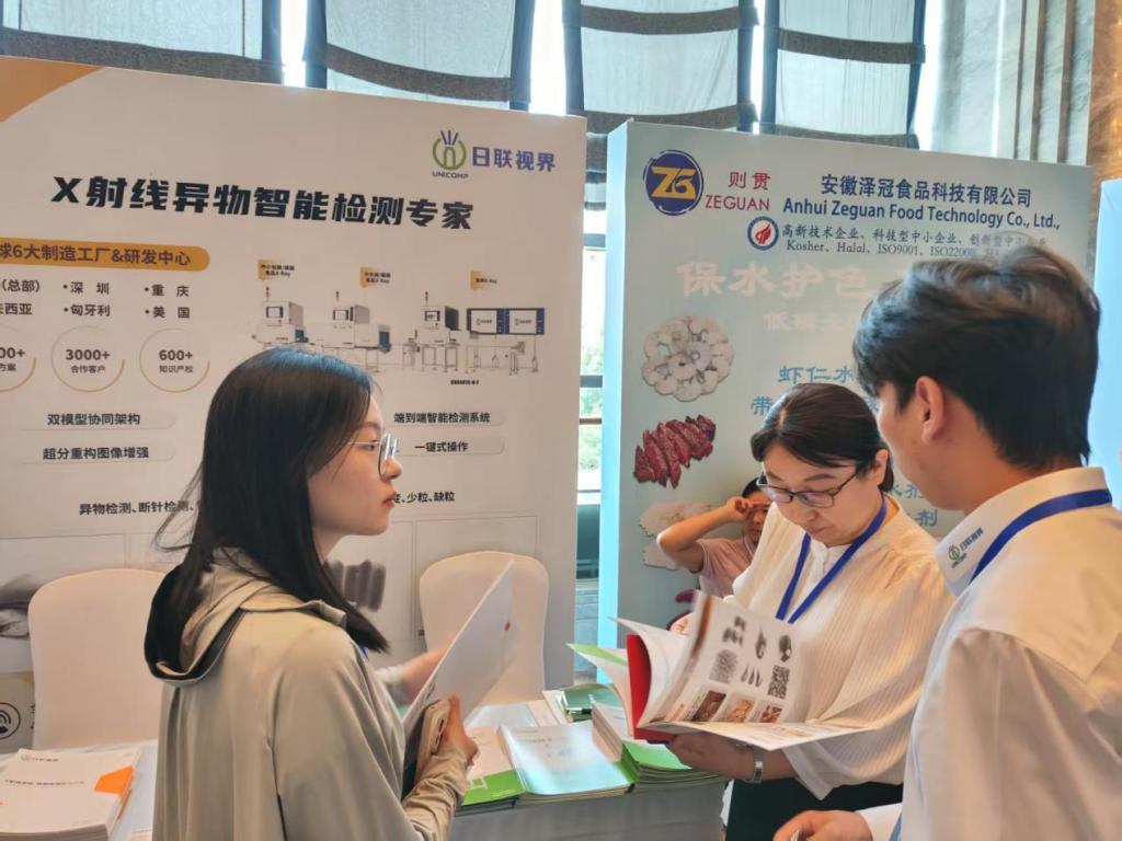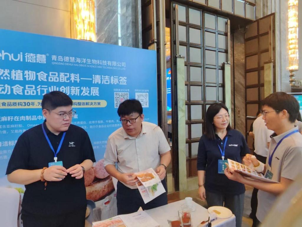 作为食品行业的年度盛会,本次大会吸引了来自肉制品加工、预制菜生产、水产加工、原辅料供应商及机械设备制造、食品质量与安全检测等领域众多知名企业参会。胡二坤带领教师团队走访了十余家行业领军企业展区,深入了解智能化生产线、功能性食品研发及绿色包装等最新技术应用。在青岛德慧海洋生物科技有限公司、山东格瑞食品配料有限公司、无锡日联科技股份有限公司等展位前,胡二坤向企业详细介绍了学院专业特色、人才培养质量及校企合作愿景。多家企业现场初步达成学生实习、联合技术开发等合作意向。