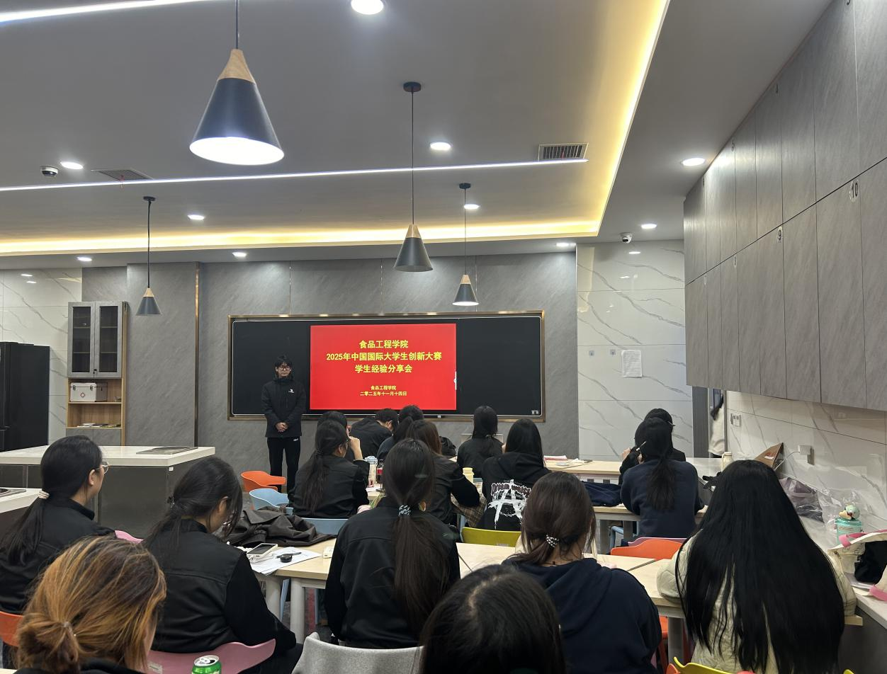 在2025年中国国际大学生创新大赛中,食品工程学院学子表现优异,共获得省级奖项4项、校级奖项2项,充分展现了学院在创新创业教育方面的扎实成效。为促进经验交流、激发创新活力,学院于11月14日在健行楼202教室举办了学生经验分享会。